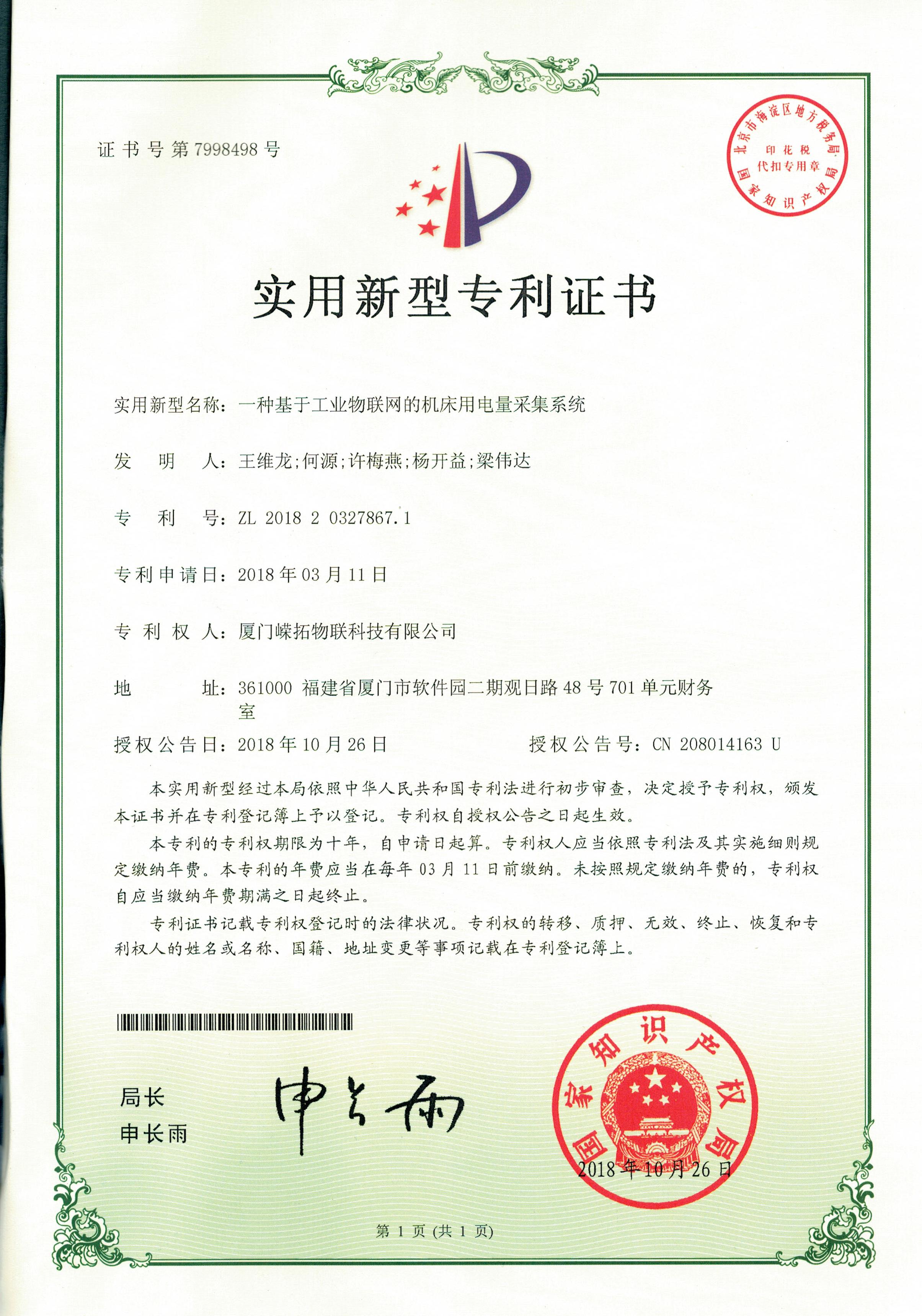 一種基于工業(yè)物聯(lián)網(wǎng)的機床用電量采集系統(tǒng),包括設(shè)置在機床的用電量采集終端、與用電量采集終端通過TCP/IP協(xié)議連接的服務(wù)器。本實用新型通過設(shè)置在機床設(shè)備上的用電量采集終端對機床用電量進(jìn)行實時采集,利用數(shù)據(jù)傳輸模塊將采集到的用電量數(shù)據(jù)通過TCP/IP協(xié)議發(fā)送至服務(wù)器進(jìn)行處理分析。