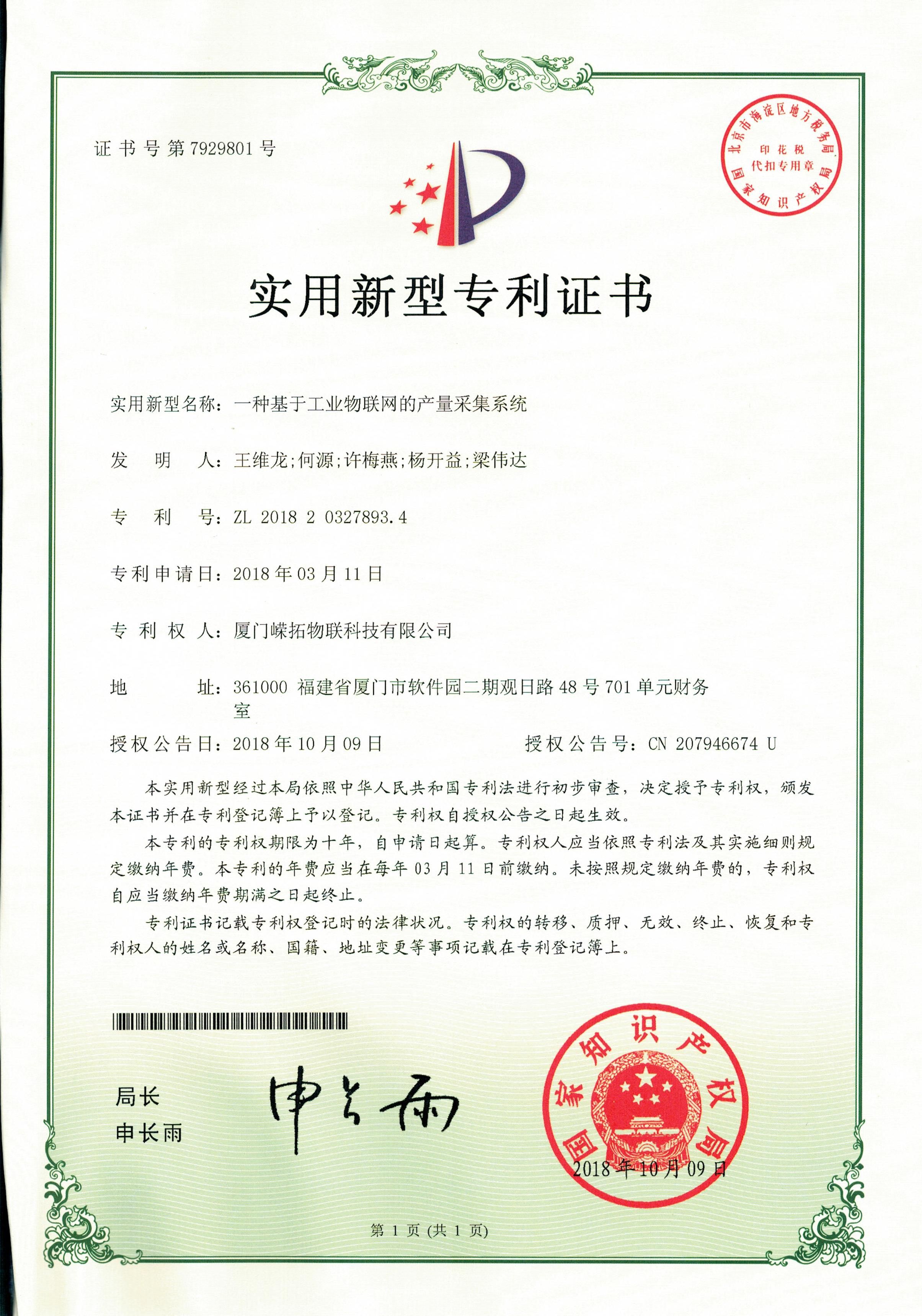一種基于工業(yè)物聯(lián)網(wǎng)的產(chǎn)量采集系統(tǒng),包括設(shè)置在機(jī)床的產(chǎn)量采集終端、與產(chǎn)量采集終端通過TCP/IP協(xié)議連接的服務(wù)器數(shù)據(jù)處理中心。本實(shí)用新型通過設(shè)置在機(jī)床設(shè)備上的產(chǎn)量采集終端對產(chǎn)量進(jìn)行實(shí)時(shí)采集,利用數(shù)據(jù)傳輸模塊將采集到的產(chǎn)量數(shù)據(jù)通過TCP/IP協(xié)議發(fā)送至服務(wù)器數(shù)據(jù)處理中心進(jìn)行處理分析。